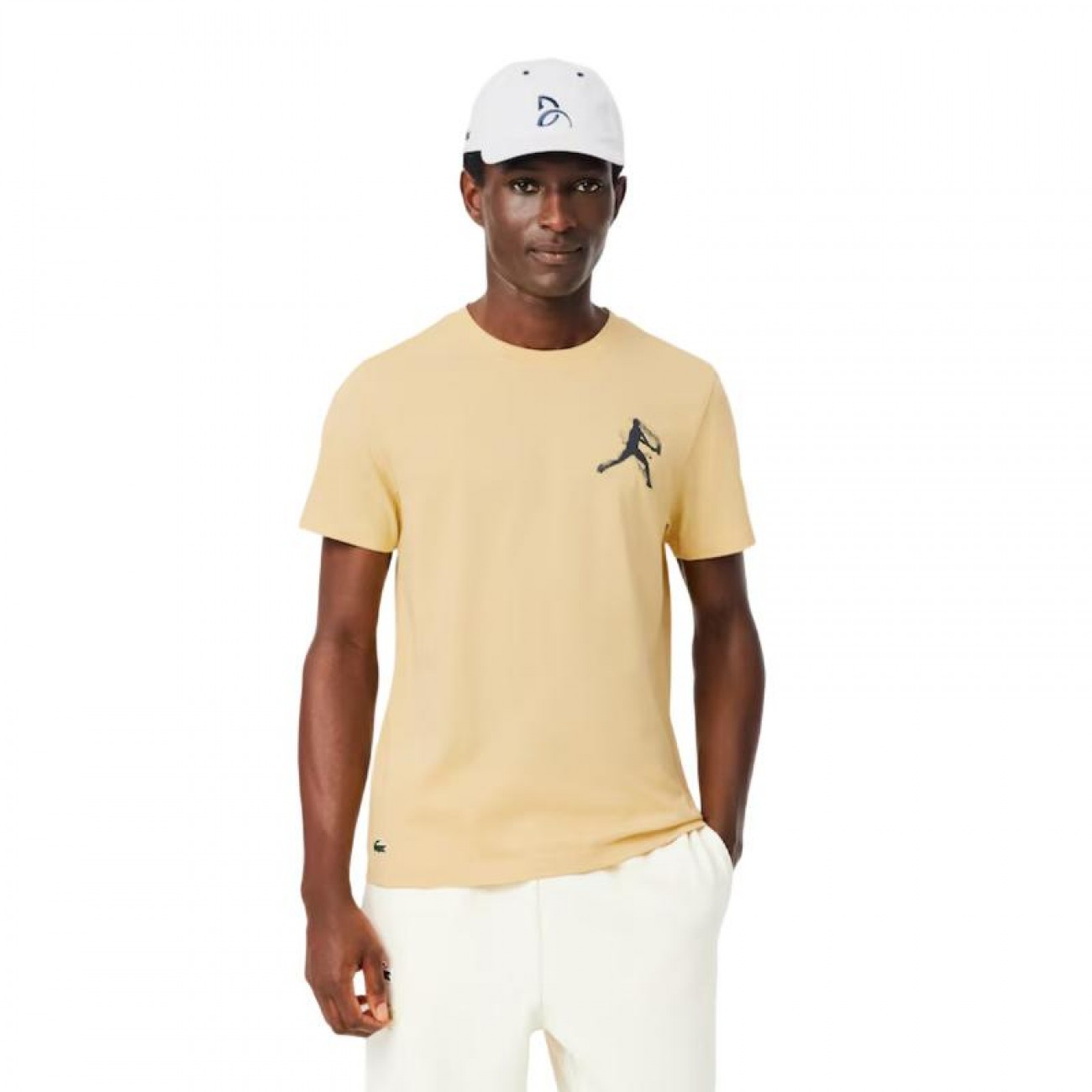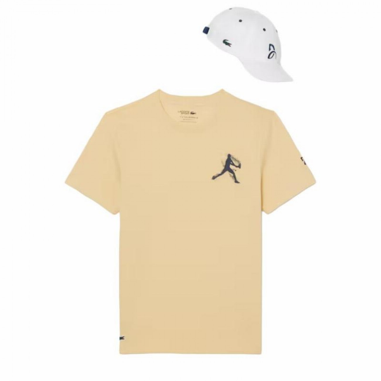 Silicone crocodiles on the T-shirt and cap, Lacoste''s premium symbol.