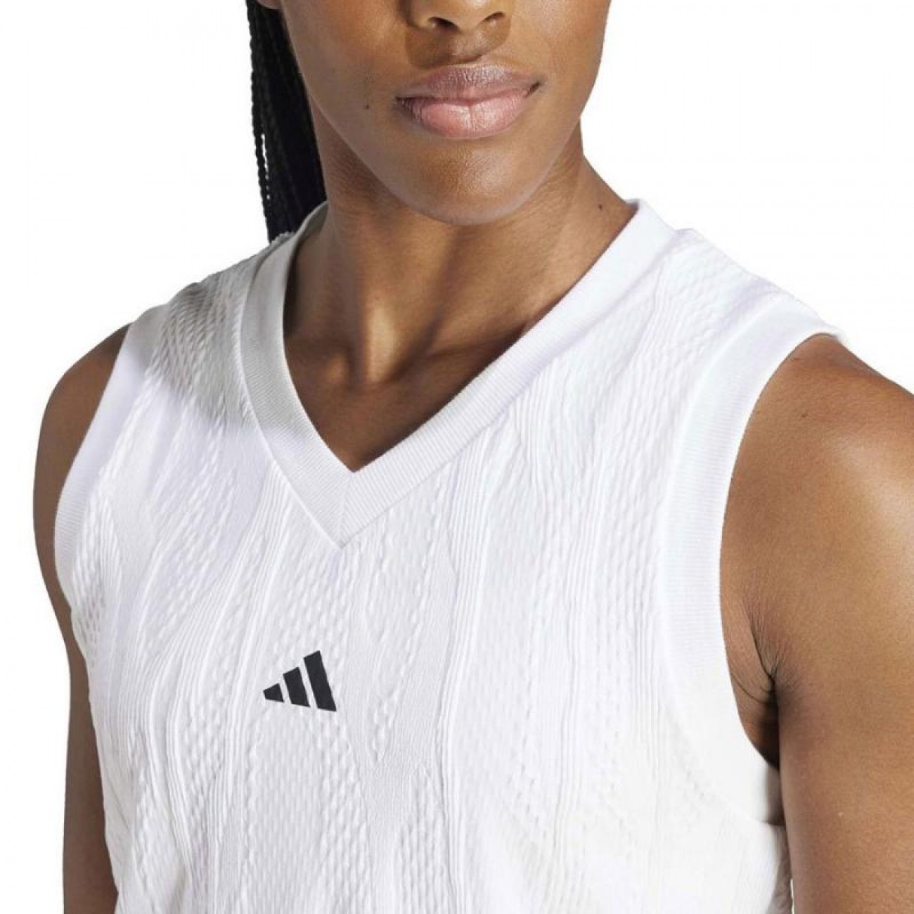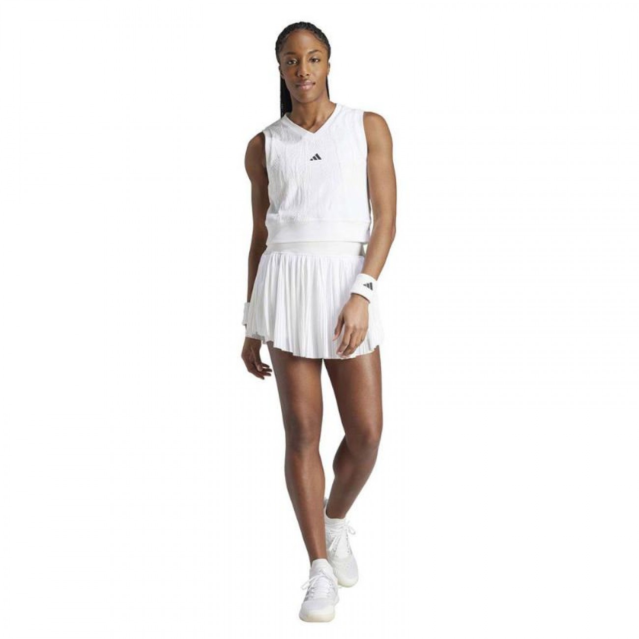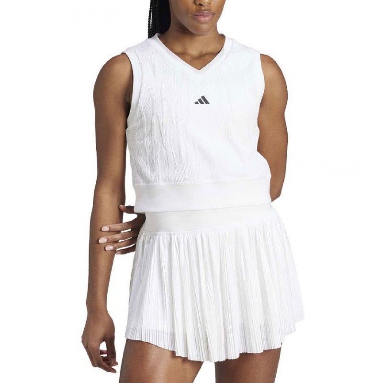 El logotipo de adidas remata el look y deja bien claro de lo que eres capaz sobre la pista.