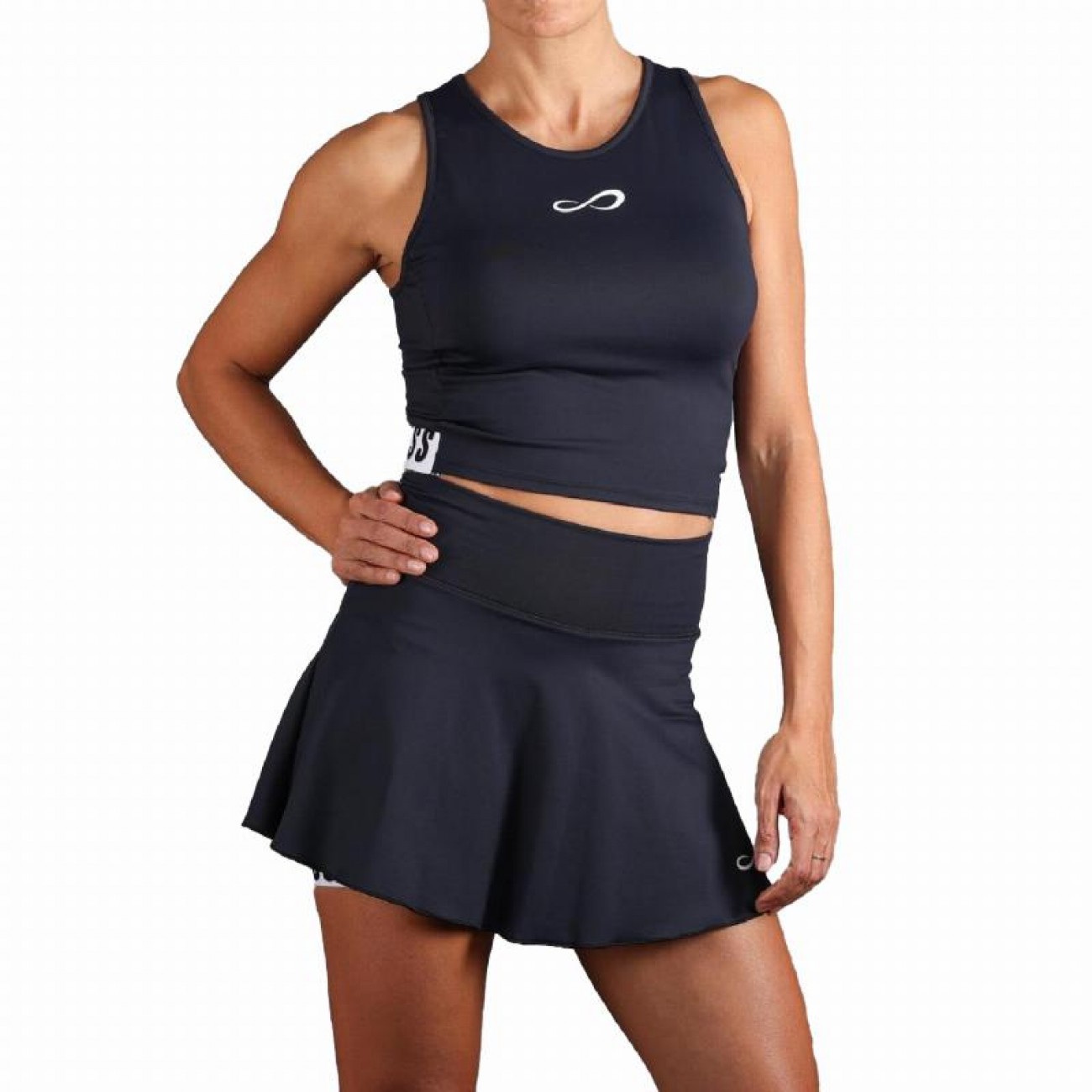 La espalda está ligeramente abierta en la parte inferior con pieza cruzada a contraste que te aporta un extra de ventilación y un estilo único.